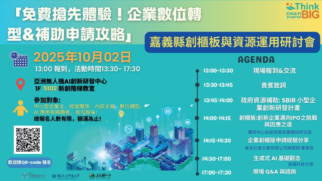 嘉義縣創櫃板與資源運用研討會: 「免費搶先體驗!企業數位轉型&補助申請攻略」