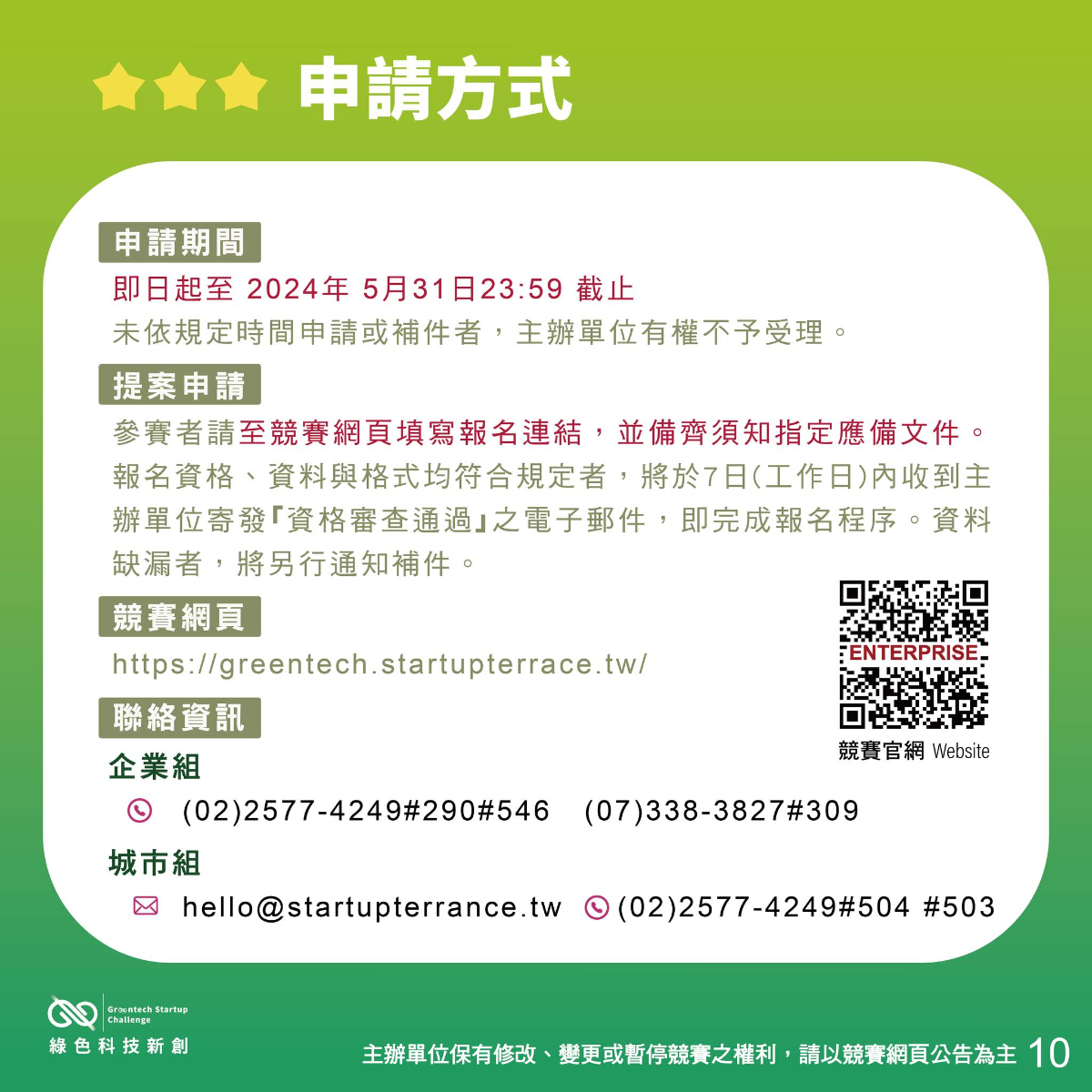 - 詳情請見官網 https://greentech.startupterrace.tw/