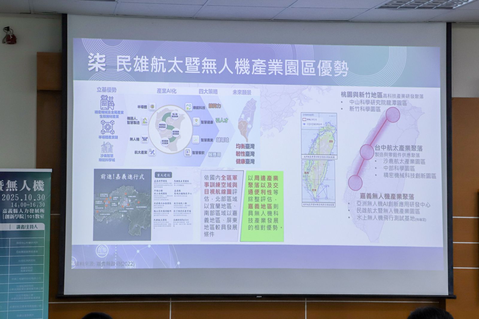 國家中山科學研究院今30日舉辦「民雄航太暨無人機產業園區發展規劃說明會」,邀請產官學研代表與投資廠商參與,會中說明民雄航太暨無人機產業園區發展構想,縣長翁章梁及立法委員陳冠廷等人出席會議,期望園區加速開發,帶動全國無人機產業鏈成長。